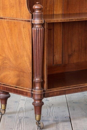 Each crossbanded in rosewood, with four graduating shelves, with turned tapering reeded supports, brass caps and casters. The pair of bookcases have recessed reeded columns in the Pompeian manner and are framed by ‘ribboned’ rosewood. In 1801, Gillows of London and Lancaster supplied a closely related pair of bookcases to Luke Dillon, 2nd Lord Clonbrock to furnish his new library at his ancestral home, Clonbrock in Co. Galway. They were sold by Mr. and Mrs Luke Dillon-Mahon, Clonbrock, Christie’s house sale, 1st November 1976, Lot 12. The fashionable ‘moving bookcase’ of this type featured in Thomas Sheraton’s Appendix to the Cabinet-Maker and Upholsterer’s Drawing Book, 1802 (pl.23).