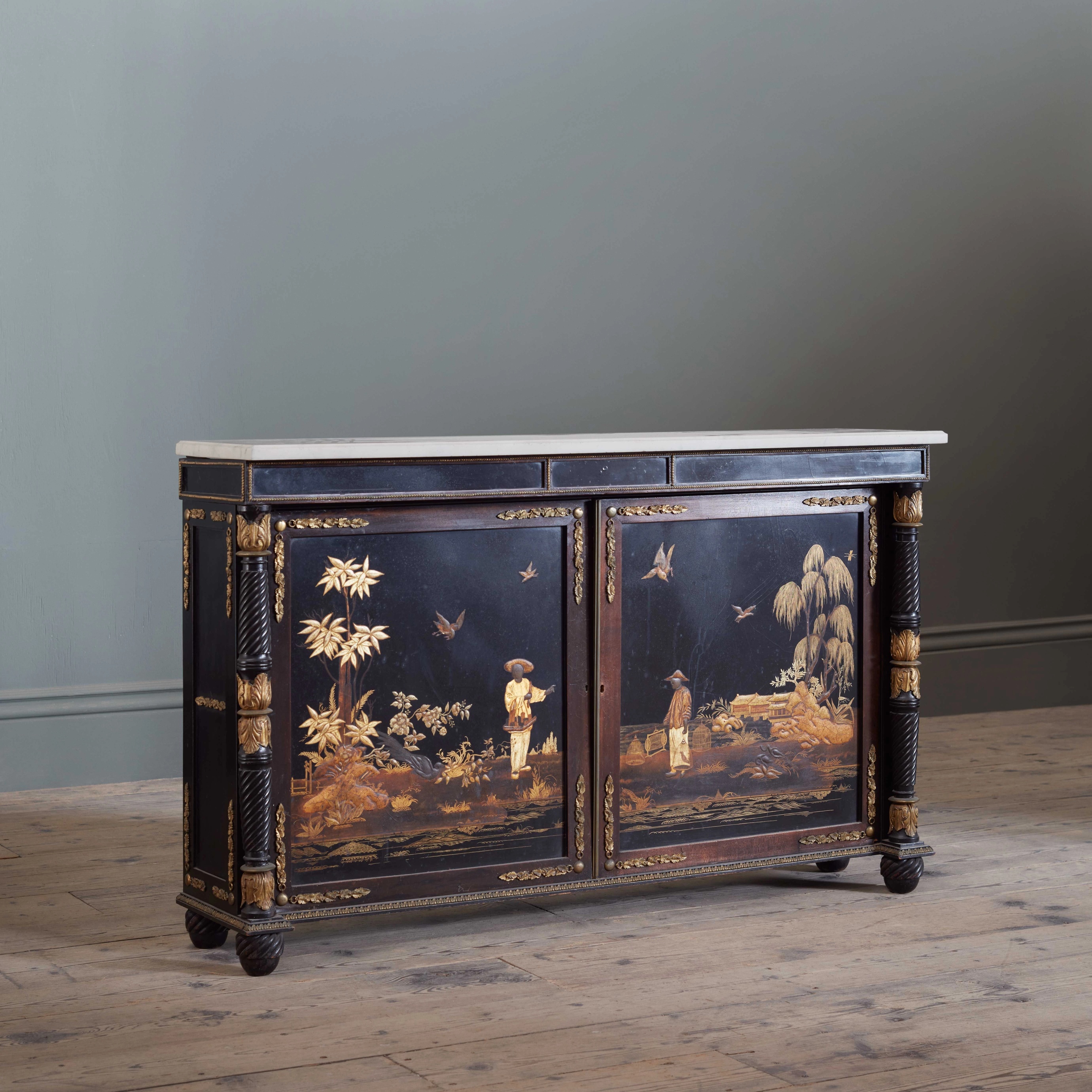 A Regency Black and Gilt Japanned Papier Mache Ebonised Side Cabinet