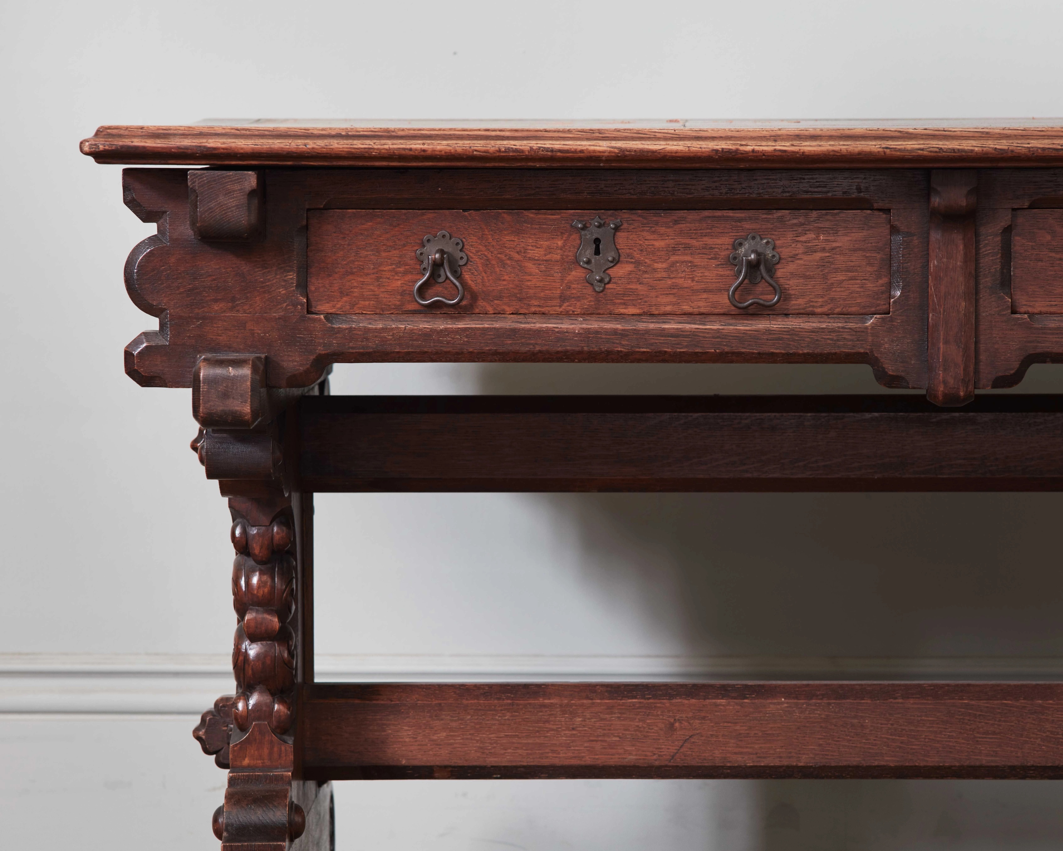A Gothic Revival Oak Writing Table by J. G. Crace, after a design by Pugin