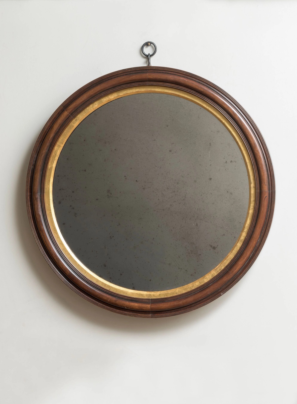 A circular, mahogany-framed looking glass based on a Regency design. The frame is delicately receded on its inner and outer edges and encircles a simple gilt-wood filet.