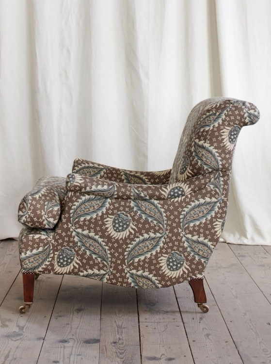 With sack back upholstery and outscrolled arms, the Millicent chair is based on an early 19th century Howard and Sons model.Fabric to be provided by client, approximately 8m required.The Millicent chair, inspired by an early 19th-century Howard and Sons model, features sack back upholstery and outscrolled arms for classic elegance.