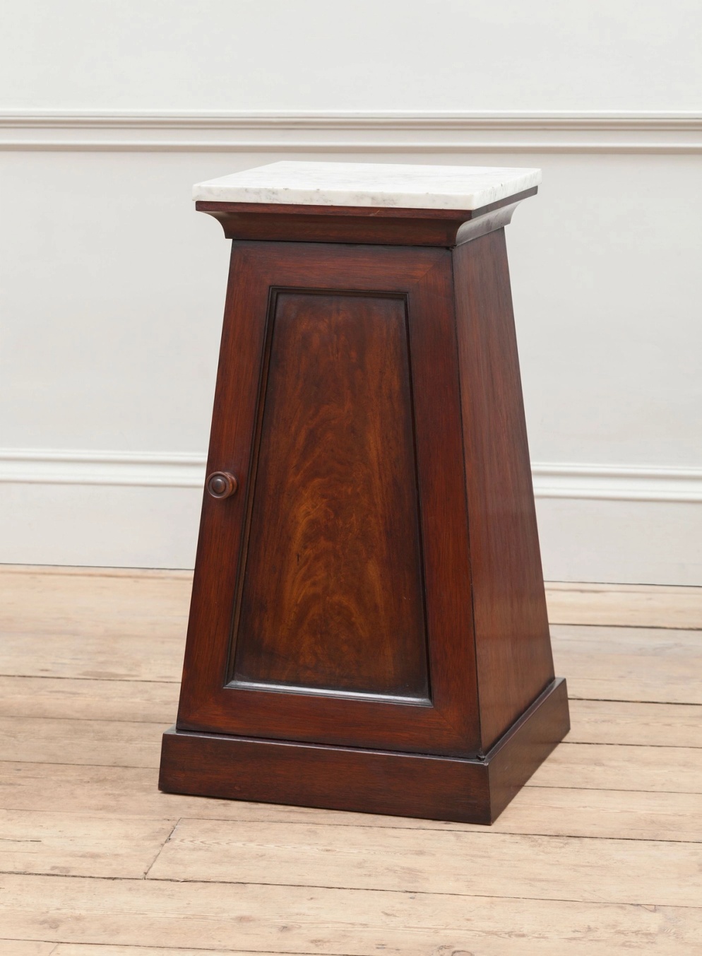 A mahogany pot cupboard, or night stand, based on an original by celebrated Regency cabinet makers Gillows of Lancaster and London. Gently tapering upwards in an obeliscal form and surmounted by a marble top.