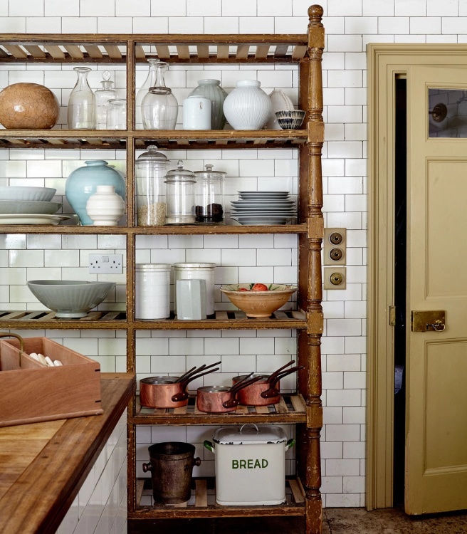 The Pantry Rack, based on shelving from an English Country House larder, made in beech and painted to client specifications.