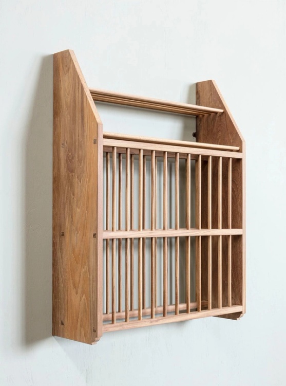 A wall mounted plate rack made from sustainably sourced teak, of generous proportions.