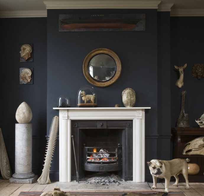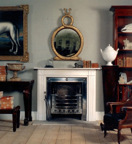 Another library shot used to advertise our Longbourn chimneypiece (inspired by a mantel from Aynhoe Park) shows the eclectic nature of the Hawker Trading inventory. No self respecting Country House should be without a natural history collection or odd piece of Victorian taxidermy.