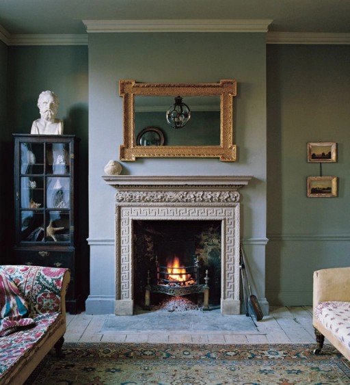 One of the first shots created (above) was of the reproduction Pelham fireplace with the Haywood grate. On reflection I think we tried to include everything but the kitchen sink! The reproduction surround holds centre stage in another masculine library environment. All of the furniture in this image has since sold but we always have comparable items.