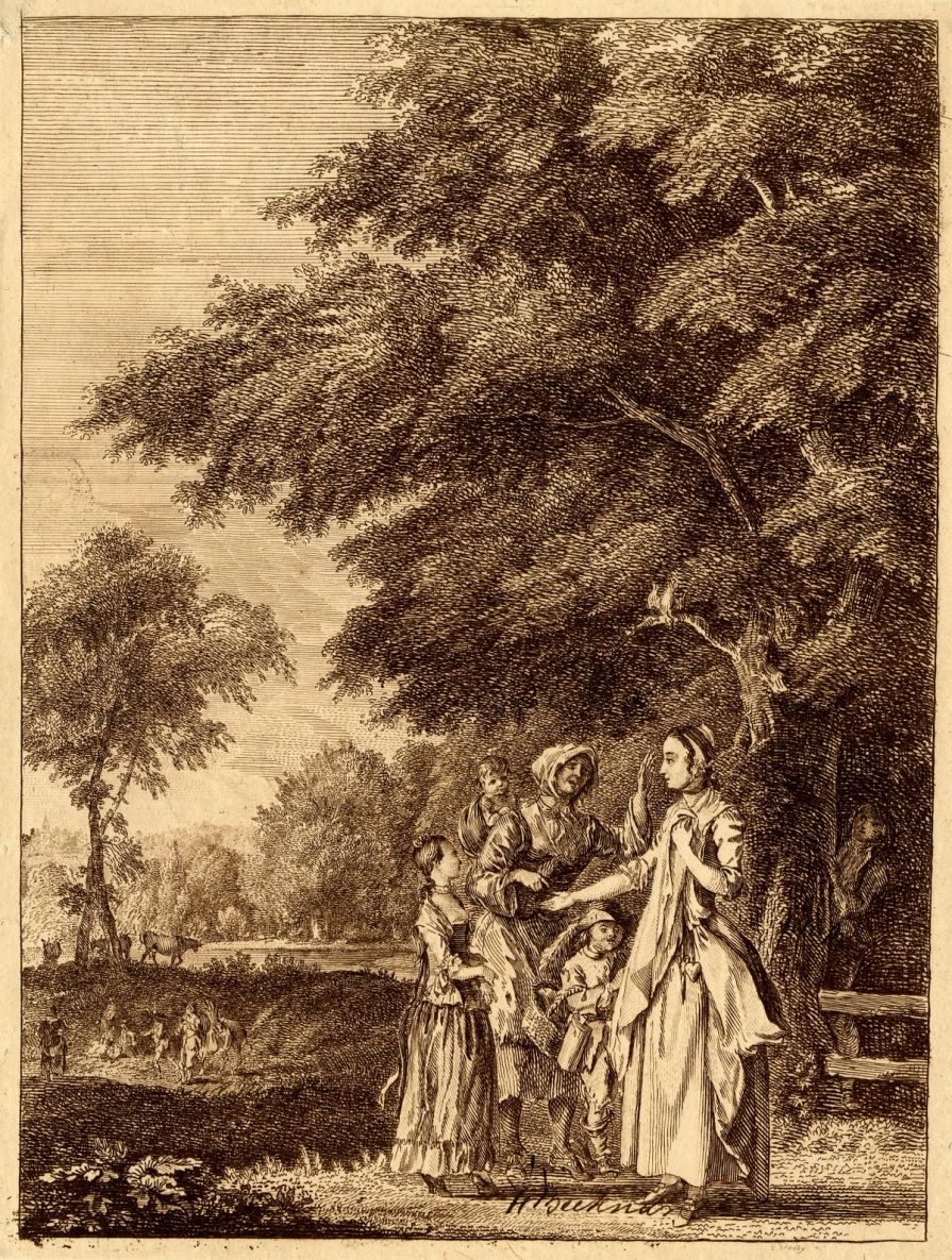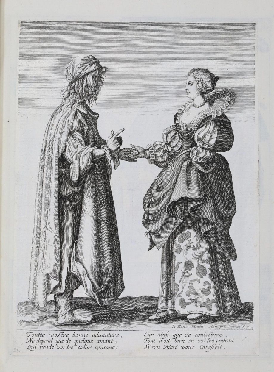 The popular theme of the fortune teller, originally found in literature and theatre during the 15th century was later developed by Italian, French, and Dutch painters throughout the following centuries. Typically portrayed as an elderly woman, wearing the ragged garments of a traveller and often accompanied by children, she is juxtaposed with the client’s innocence and naïveté, and with her refined, affluent beauty. This contrast hints at exoticism, sensuality, and mystery. Within the context of the Rococo, the theme acquires a more positive connotation: old age and hardship are absent, and only good fortune is foretold.