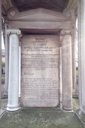 After Eliza’s death it took six months for Sir John Soane and his team of students to design her resting place and family Mausoleum, drawing inspiration from Roman architecture.