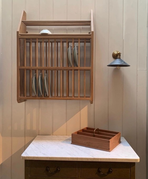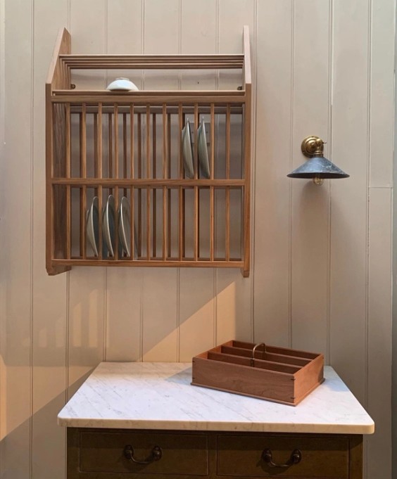 I feel that this collection reflects it beautifully and continues the Jamb tradition of re-creating classic design with exceptional quality. Some of the pieces are inspired by furniture that we have in our home in Camberwell. The pantry rack and plate rack in particular.The Pantry Rack is based on shelving from an English Country House larder, made in beech and painted to client specifications.