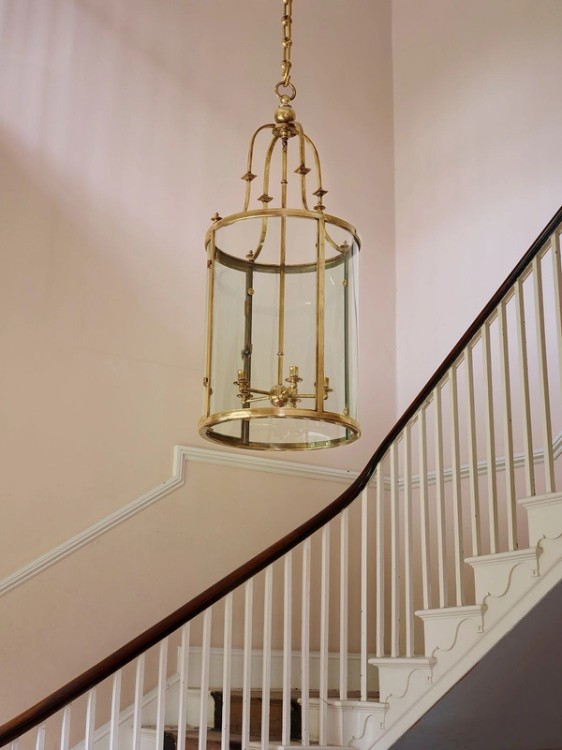 The Baillie hanging lantern in Antique Verdigris, seen here between two classical Ionic columns, blends harmoniously within the rich and aged patina of this outdoor setting. Much of the design of the Baillie, however, is inspired by the Arts and Crafts aesthetic movement and is named after the prolific designer Baillie Scott (1865-1945). I am very much inspired by Scott and endeavour to incorporate his philosophy into my own reproduction designs: honouring craftsmanship whilst remaining faithful to the material and function.