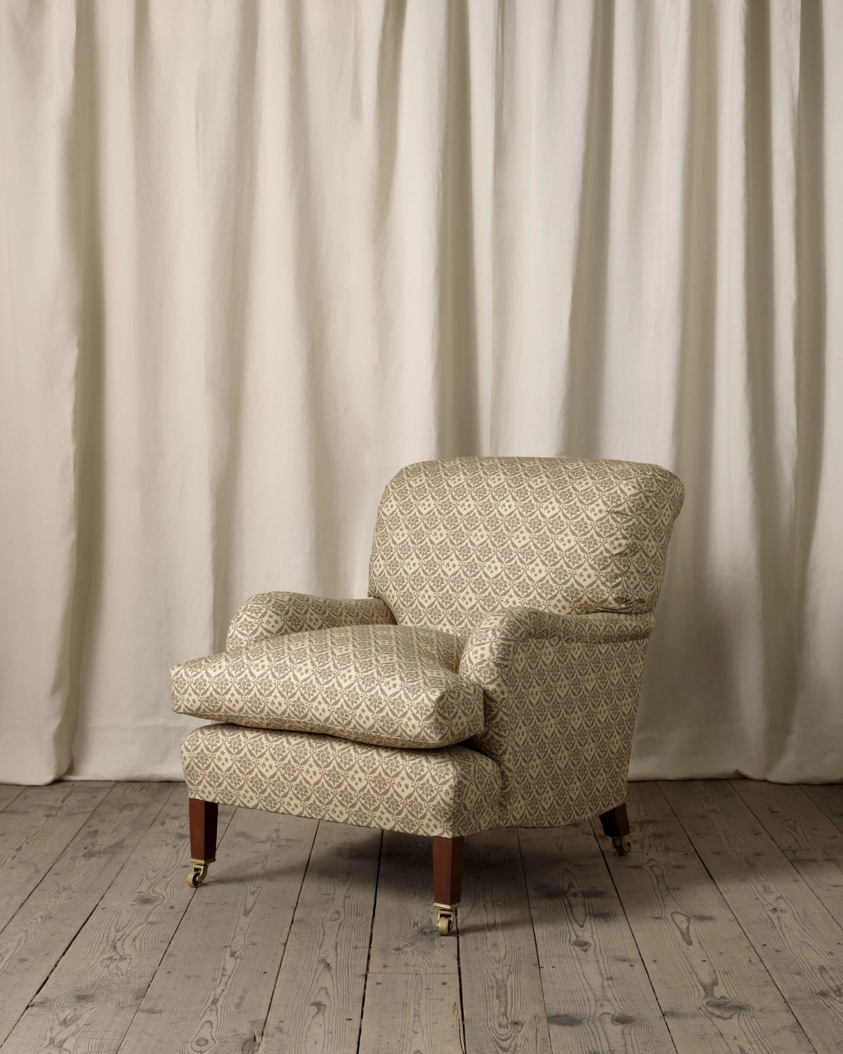 The Cedric chair is as robust as it is deeply comfortable. It evokes the grandeur and ease of the 19th century English country house, echoing the Howard & Sons ‘Bridgewater’ design. Handcrafted, generous of seat with siege de duvet upholstery and squared mahogany legs on brass casters, it is synonymous with ultimate comfort.