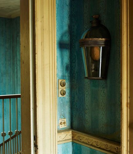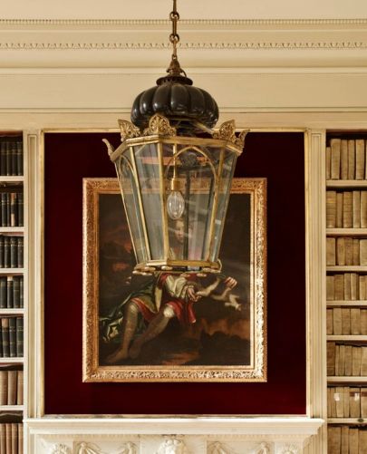 We shot the Tatham wall lantern in the exquisite Dining room with the centuries old gilt decoration. It was the perfect background for the distressed gilt finish and perfectly matched the elegance of this Egyptian revival wall light.