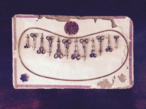 They’re probably from the Birmingham or Wolverhampton area which were centres of metalwork manufacture during the industrial revolution. I presume its a sample sheet that a tradesman would have used to sell. Each of the tiny scissors are different and they actually work. I just adore that.