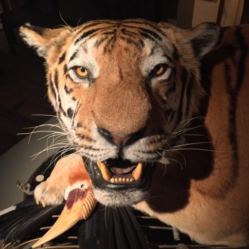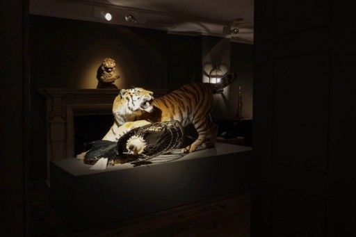 Arguably, the most striking and arresting piece in the show is a Siberian Tiger with two Hornbill birds.