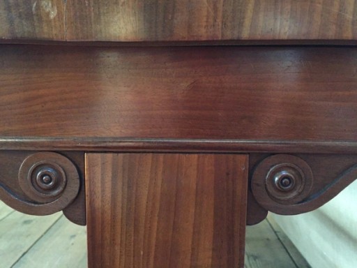 The design of this Regency writing table draws on the Classical and Grecian Revival influences of the period, moving away from the former decorative Rococo and Baroque styles.