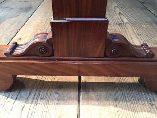 I travelled to the USA on a buying trip with a business partner. The trip didn’t start as well as planned. A huge snowstorm descended on the Canadian/ American border, and we had to postpone buying, which resulted in us watching ‘The Big Lebowski’ in the local village hall! After the snow cleared, we did find some really interesting pieces, including a beautiful mahogany table in the Grecian revival style, with an inscription on the underside, pencil scrawled and partly faded.