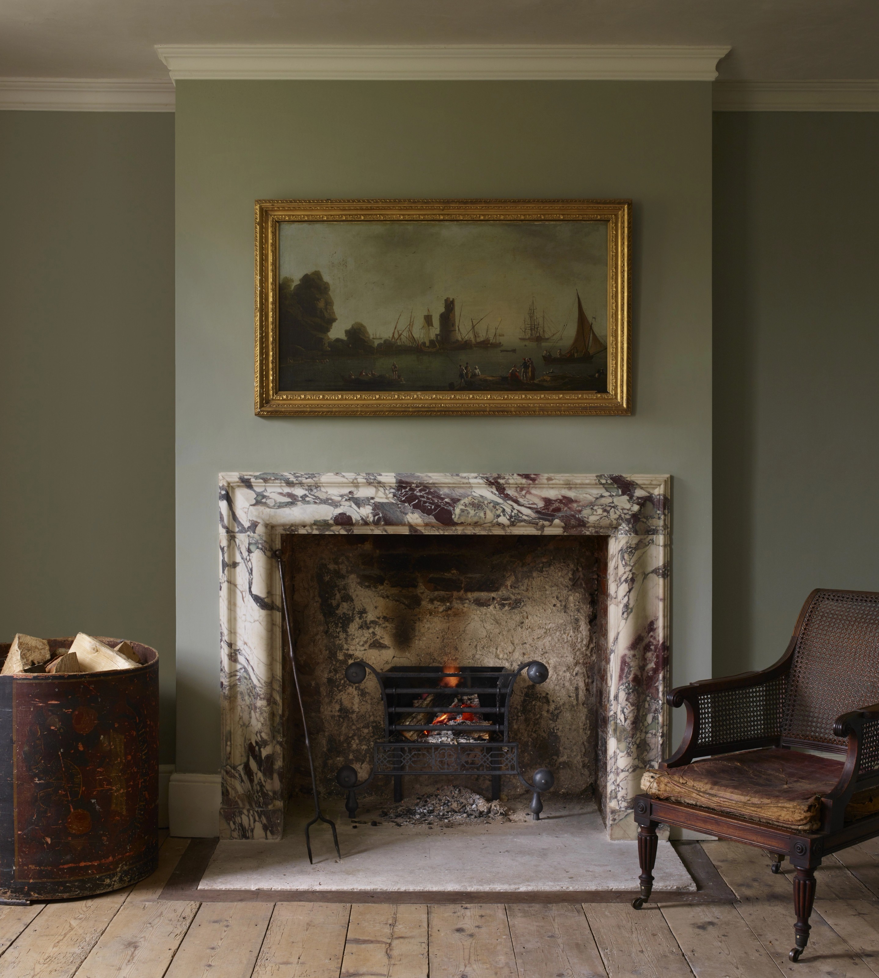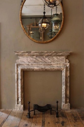 The choice of material can give an important hierarchy between several pieces throughout one property. The principal rooms often require more opulent or bolder tones than more intimate spaces, which might suit a more muted palette. The drama and dynamism of breche marble often lend themselves to more architectural carving, particularly in the early Georgian era, when exotic marbles were very highly valued. In a design scheme where carving is not favoured, a strong marble can imbue a simple chimneypiece with the gravitas to hold a principle room.