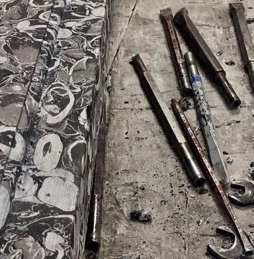 Creating a mantle from blocks of Breche marble is the ultimate bespoke chimneypiece. There is nothing more unique. There will only ever be one. It can never be replicated. It is an authentic process, as it would have been centuries ago. Once the block has been sourced and quarried from the side of an Italian mountain, it is only when you cut into it that the true and complete beauty is revealed. I like surrendering to this process where the magic can only be revealed in the carving. It is something you don’t have complete control over.