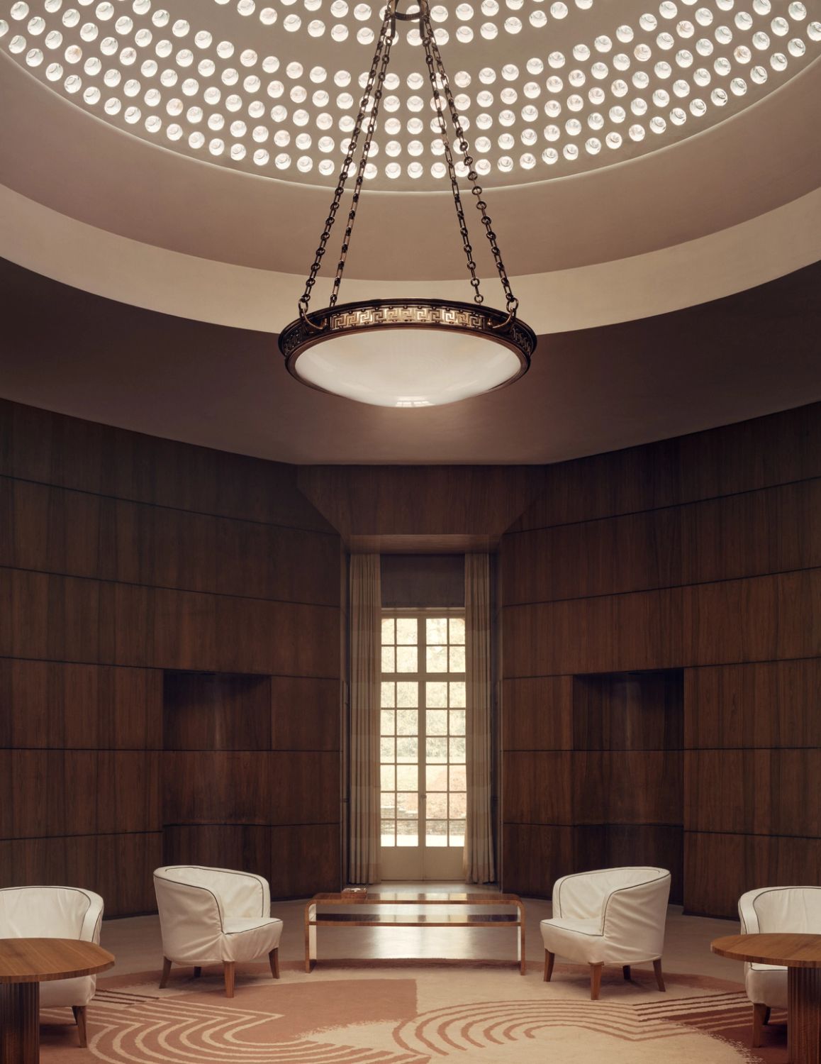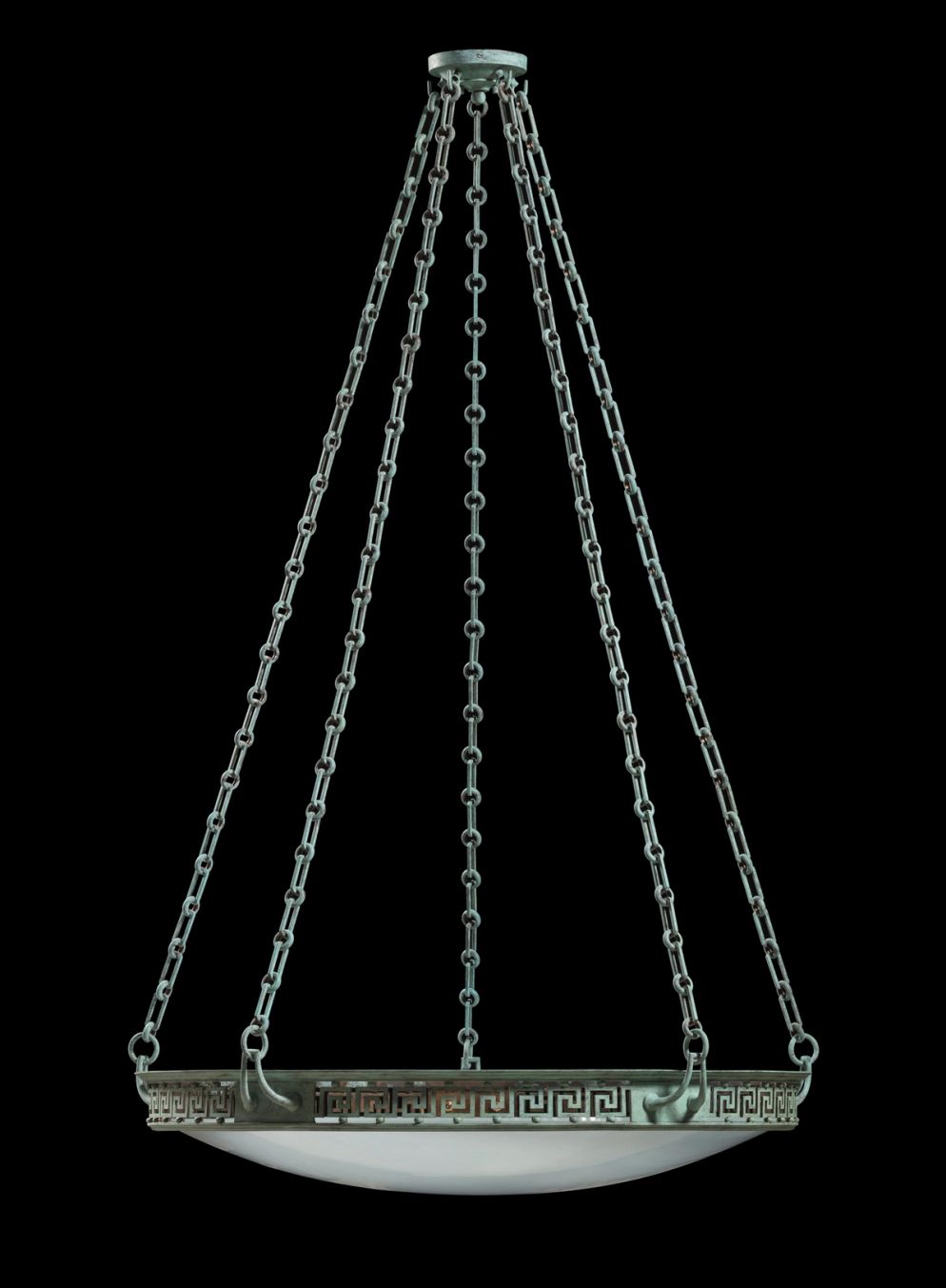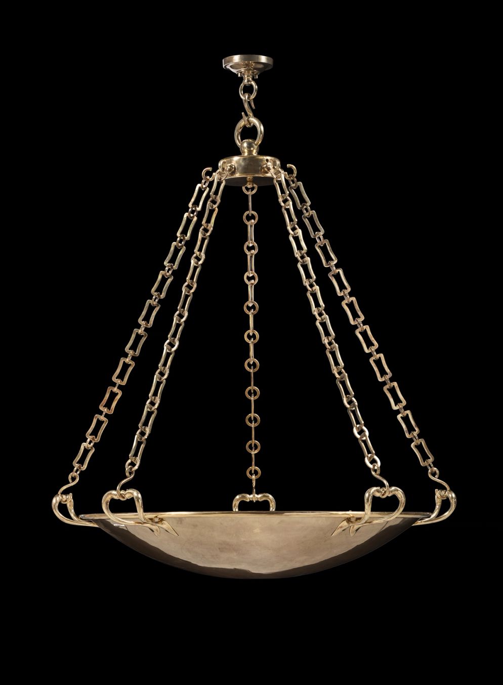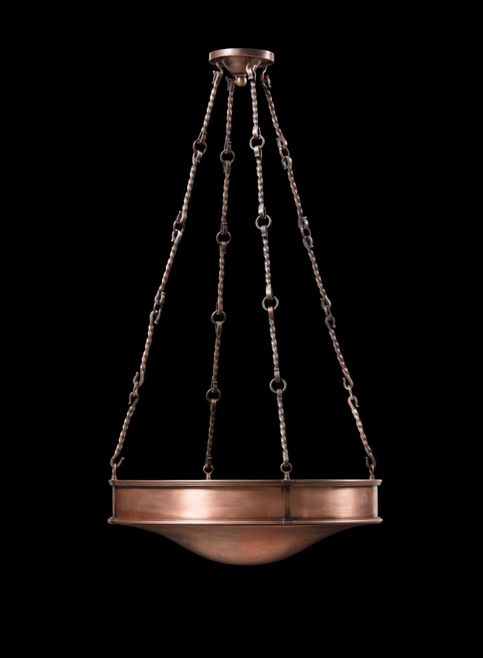 Suspended from three or four chains, Jamb dish lights in brass or with an opaline effect glass dish, range from small to grand in scale. The brass dish and handles of the Batsford recalls an ancient Roman tazza while the Atlas Dish light evokes Art Deco extravagance.