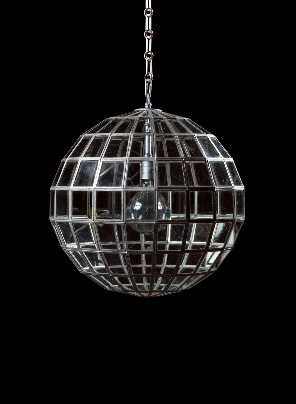 This lantern reflects the Art Deco movement of the interwar period. The use of tin embodies the rejection of traditional materials and the squared panels are typical of the clean lines and bold styling of the movement.