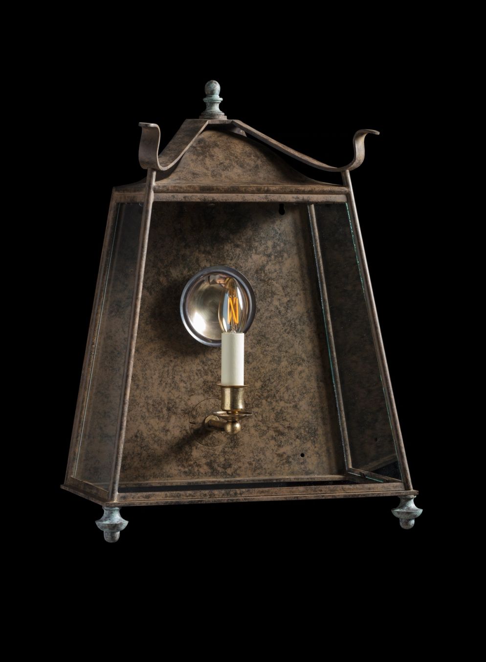 From the intricately cast brass Arts and Crafts Boswell Wall Lantern, with its domed top with fan and turret finial detailed surround, to the clean lines of the semi cylindrical Art Deco Hopper wall lantern in cast brass, Jamb’s varied collection of wall lanterns is suitable for interior and exterior use. Lights can be scaled and patinated in any finishes and all lanterns can be UL listed, from 18th-century to Art Deco designs.