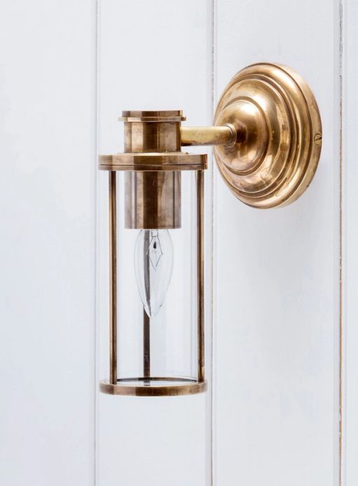 Three cords of brass hold the cylindrical glass pane in place. Inspired by the industrial age of the early twentieth century, this wall light conveys a nautical efficiency. The detail is sparing and robust, yet the golden umber of the brass instils a lavish quality. The Adler is, perhaps, fit only for the captain’s quarters.