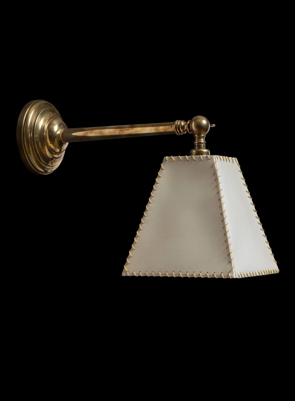 An extended version of our standard Brooke Wall Light. A tapering arm of brass projects from the moulded, circular plate with simple grace. This wall light can be finished in any one of our lighting finishes and fitted with a variety of shades.