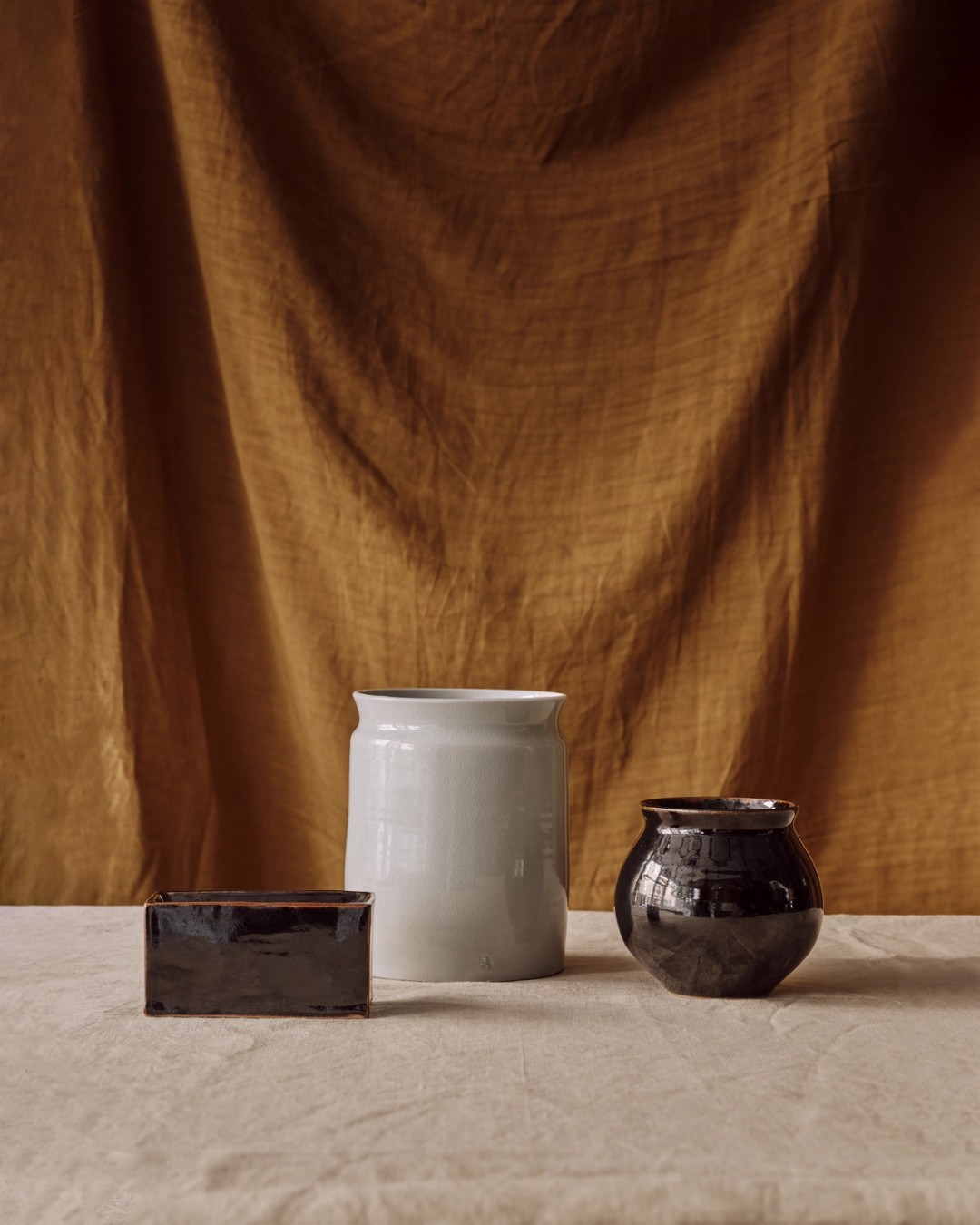Limited edition ceramics by Jamb in collaboration with Isatu Hyde. Three historically inspired forms, handmade in England.